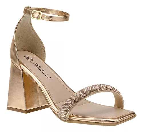 Sandália Feminina Salto Quadrado Bloco Grosso Brilho Strass